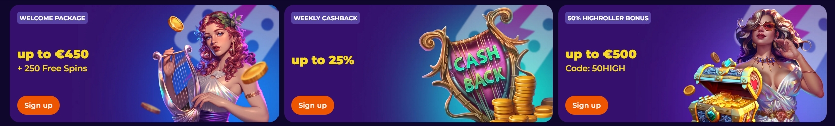 Na je eerste storting kun je een welkomstpakket activeren met een stortingsbonus en gratis spins op geselecteerde slots. De exacte percentages, maximale bedragen en het aantal free spins staan vermeld in de bonussectie en kunnen periodiek worden bijgewerkt.